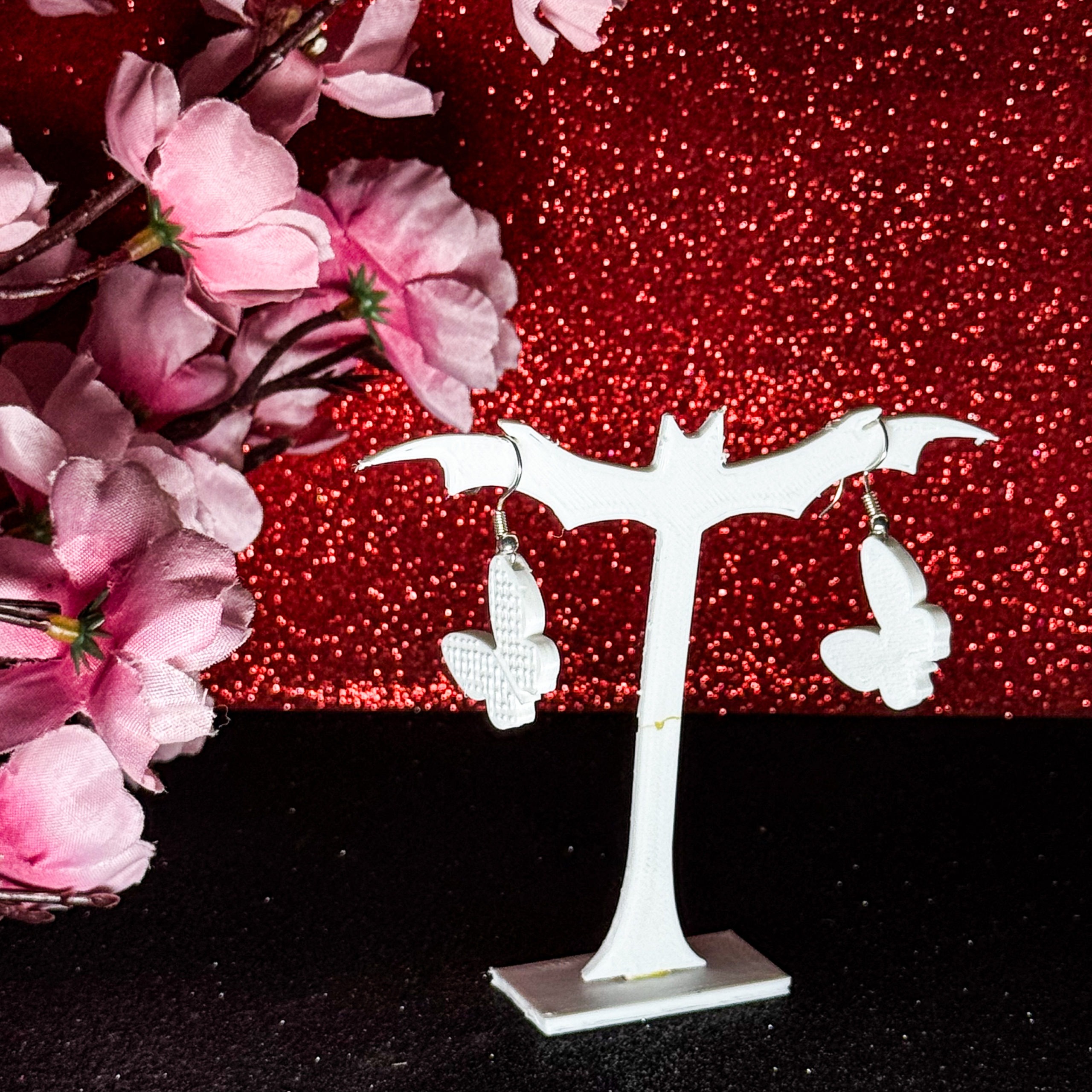 Embrace delicate beauty and transformation with these serene white butterfly earrings. Their graceful silhouette and crisp finish evoke a sense of purity and freedom, fluttering gently with your every movement. A lovely accessory for adding a touch of natural elegance and whimsy to your style.